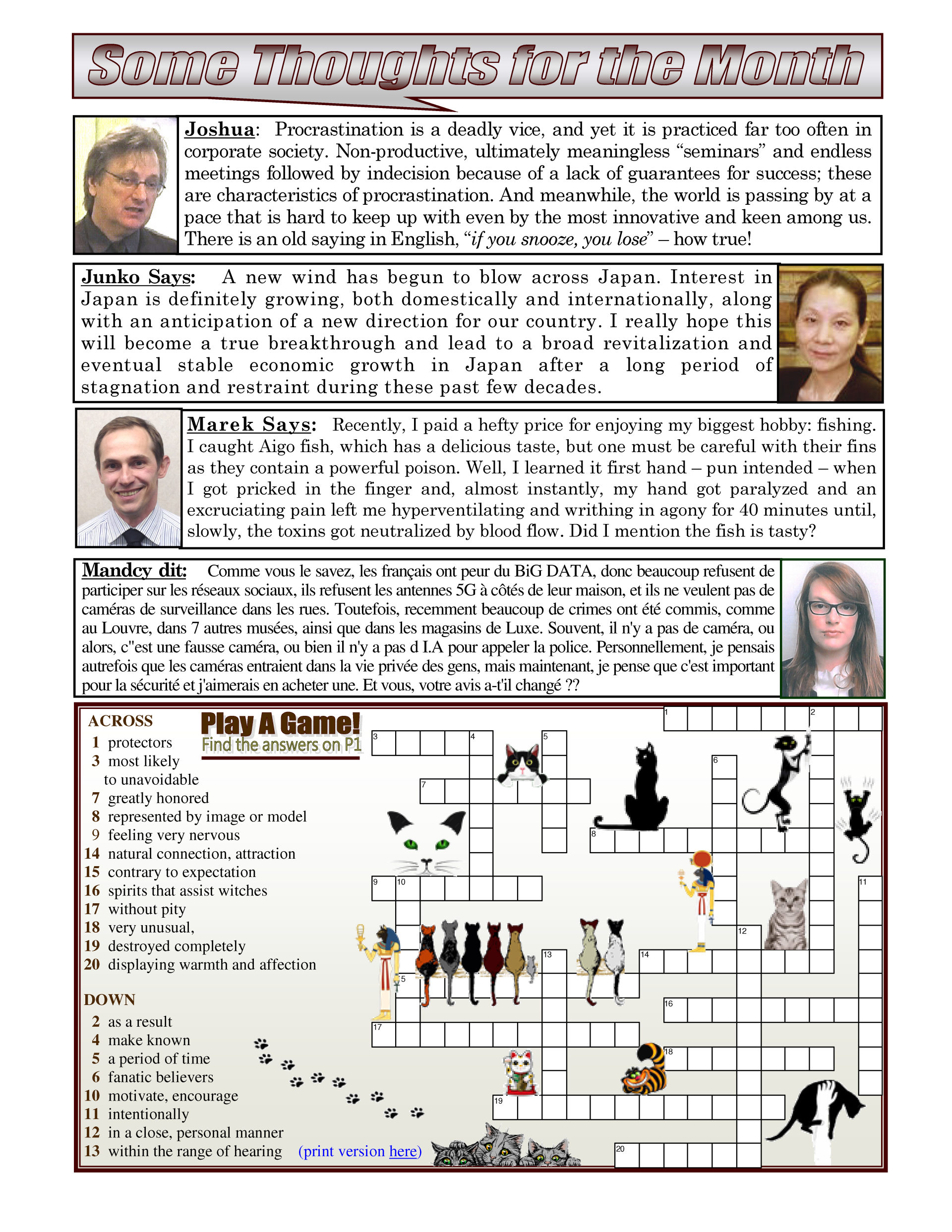 CROSSROADSのスタッフから、最新のトピックスやメッセージなどを毎月お届けしています。クロスワードパズルなどのコーナーもあります。