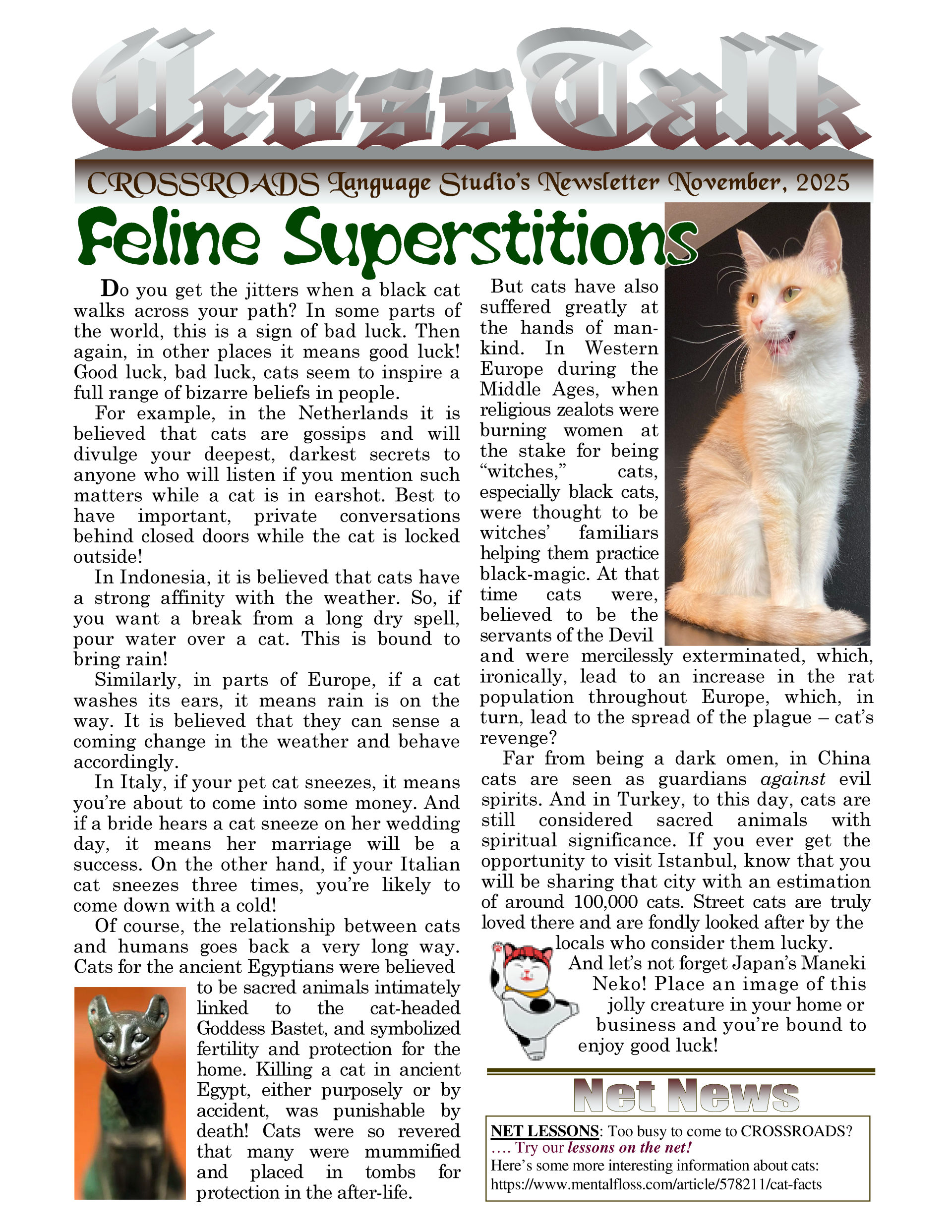 CROSSROADS Language Studio’s Newsletter Novemver, 2025 Feline Superstitions
